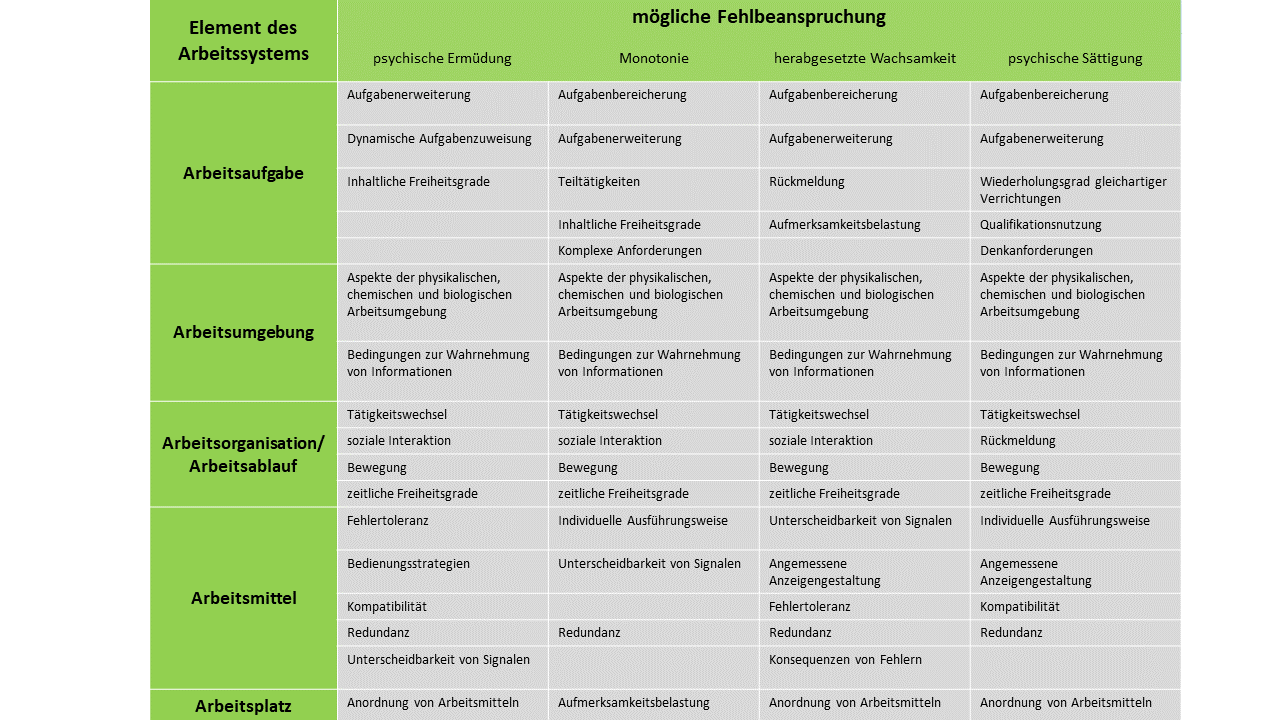 Die hier gezeigte Grafik zeigt dir eine Übersicht der möglichen Fehlbeanspruchungen und empfohlenen Gegenwirkungen: